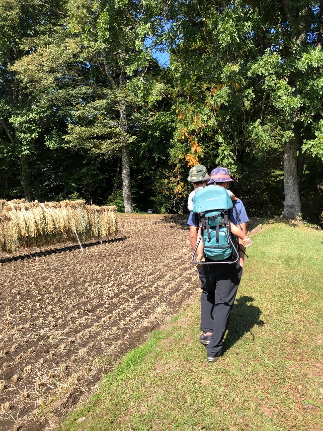 子どもはまだ小さいので、モンベルのリュックに乗せて行きます。