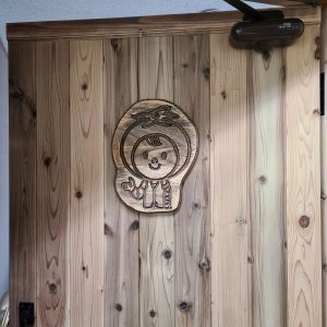 そして最近、所長室の入り口の扉に木彫りのあんちゃんが付きました!