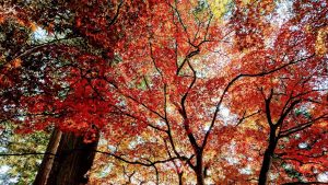 見事です!まっかな木漏れ日の中を利用者さんと気持ちの良いお散歩ができました。