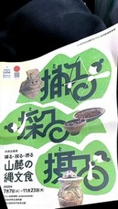 栽培、採取、狩猟の視点から縄文の食文化の企画を地元の考古館でえ展示しています